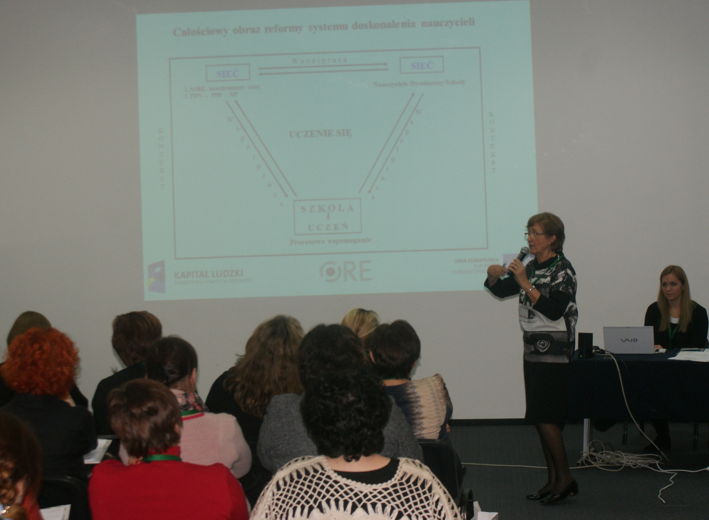 „Podstawowym zadaniem była diagnoza potrzeb nauczycieli. Współpracowaliśmy z osobami, pełniącymi funkcje SORE. Potem wykorzystując pomysły wypracowane w sieci, nauczyciele pracowali ze swoimi radami pedagogicznymi” — Alicja Sikora, koordynatorka sieci z Krakowa, pokazała jak łączyć wspomaganie szkół z doskonaleniem nauczycieli.